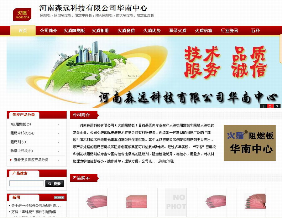河南森遠科技有限公司(火盾阻燃板)目前是國內(nèi)專業(yè)生產(chǎn)人造板阻燃劑和阻燃人造板的龍頭企業(yè)。公司引進國際先進技術(shù)并結(jié)合自有科研成果,創(chuàng)造出一種新型的用途廣泛的“森遠”牌木材或木纖維用無毒非鹵高效環(huán)保阻燃劑。其中尤以密度板和刨花板阻燃劑更為突出,該產(chǎn)品處理的阻燃密度板和阻燃刨花板真正可以達到B級難燃。經(jīng)過多年實踐,“森遠”密度板和刨花板阻燃劑成為當(dāng)今國內(nèi)性價比最高的阻燃劑,阻燃性能優(yōu)秀,毒性小,用量少,對板材物理力學(xué)性能影響小,操作簡單,運輸方便。公司高瞻遠矚,和國內(nèi)知名人造板廠密切合作,生產(chǎn)出國內(nèi)最優(yōu)秀的“火盾”牌B級和C級阻燃密度板和阻燃刨花板。利用我們的阻燃劑,采用特殊生產(chǎn)工藝生產(chǎn)出的阻燃密度板和阻燃刨花板,不僅具有優(yōu)異的阻燃性能,而且保持了板材的物理力學(xué)性能不改變。其優(yōu)秀的吸水厚度膨脹率和內(nèi)強表強以及耐老化性更是同類產(chǎn)品中的佼佼者。產(chǎn)品在國內(nèi)外市場普遍得到好評。阻燃密度板不僅達到GB8624-2006 B級,而且達到英標(biāo)BS476-PART7 CLASS1級別。技術(shù)+品質(zhì)+服務(wù)+誠信構(gòu)成我們的價值鏈條,做事做人都請放心,用“火盾”板,高枕無憂。 |
