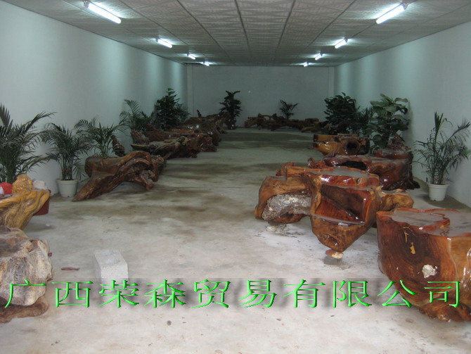 紫柚木、蜆木、金絲李根雕茶幾展示廳
