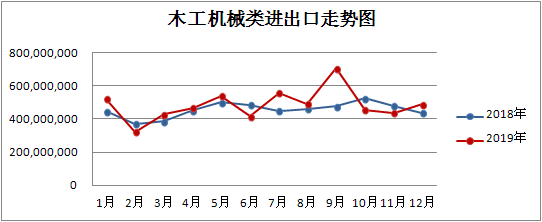 2018-2019年我國木工機械產(chǎn)品進(jìn)出口曲線圖