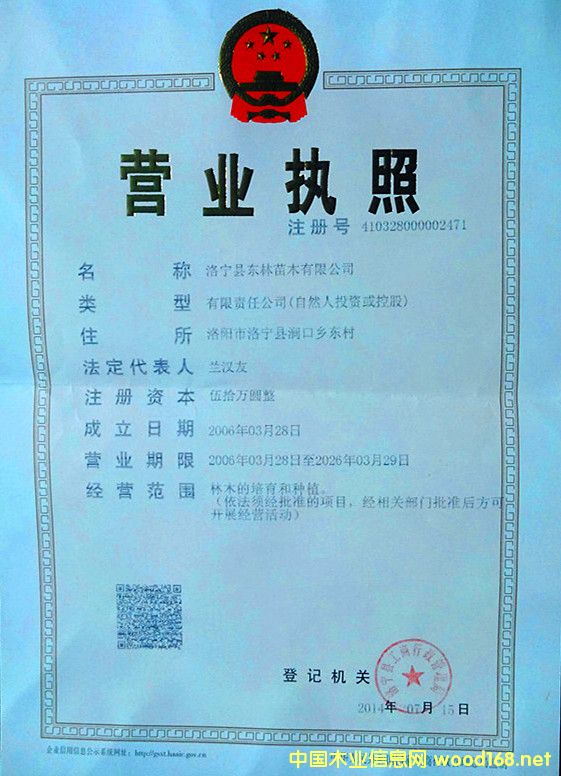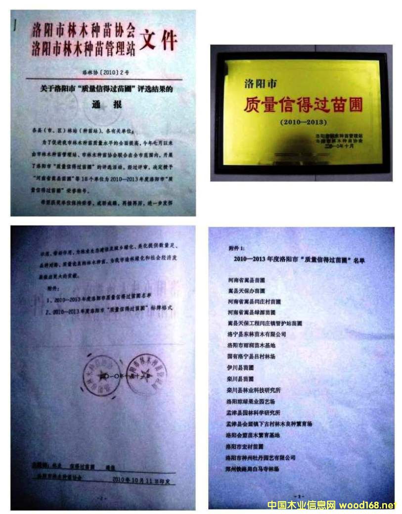 洛陽市質(zhì)量信得過苗圃證書